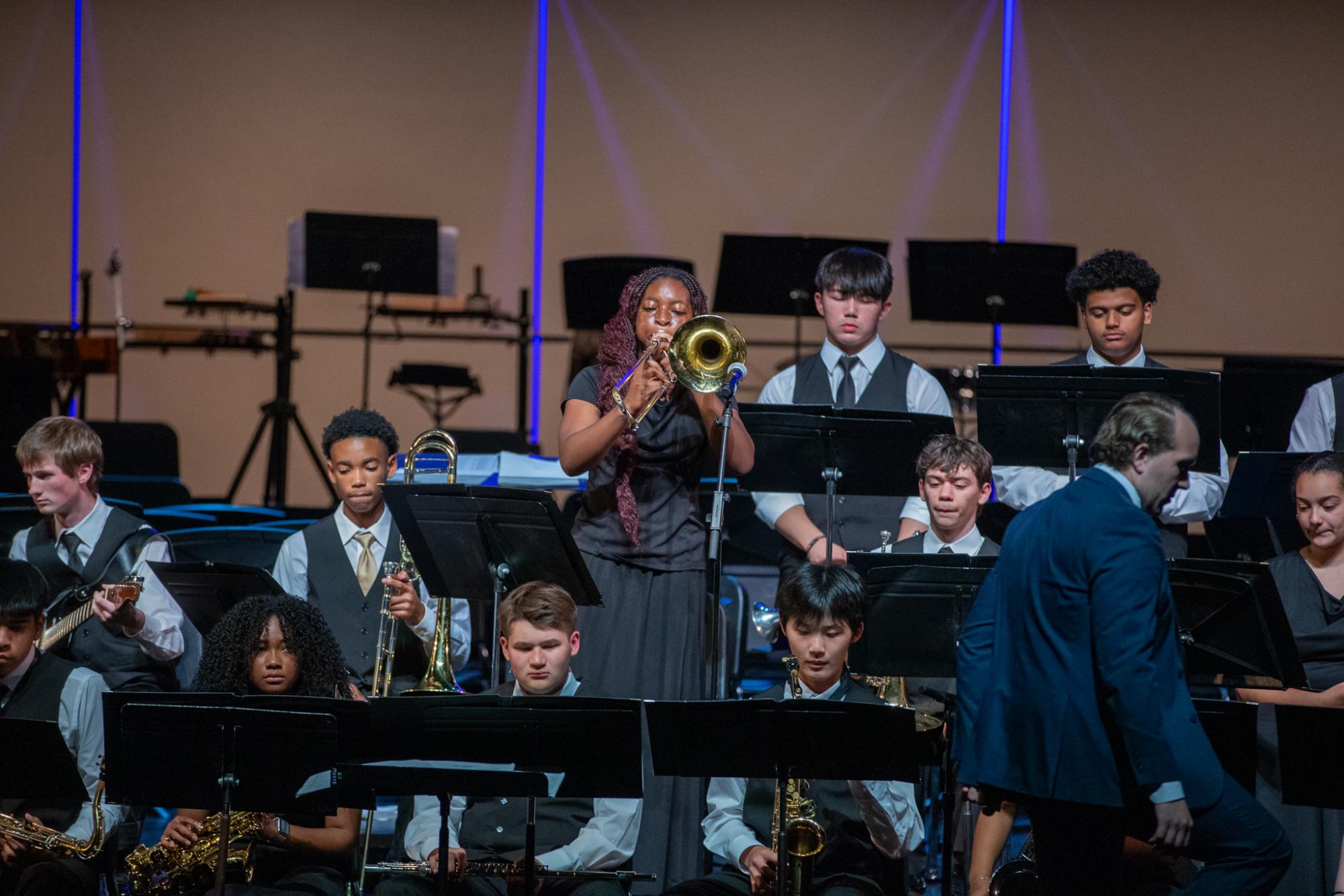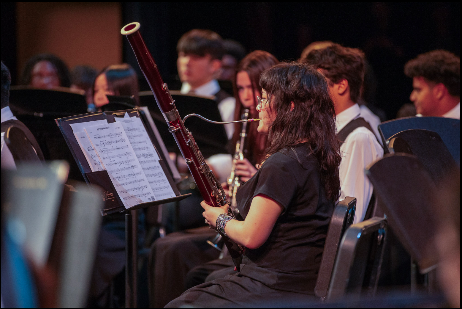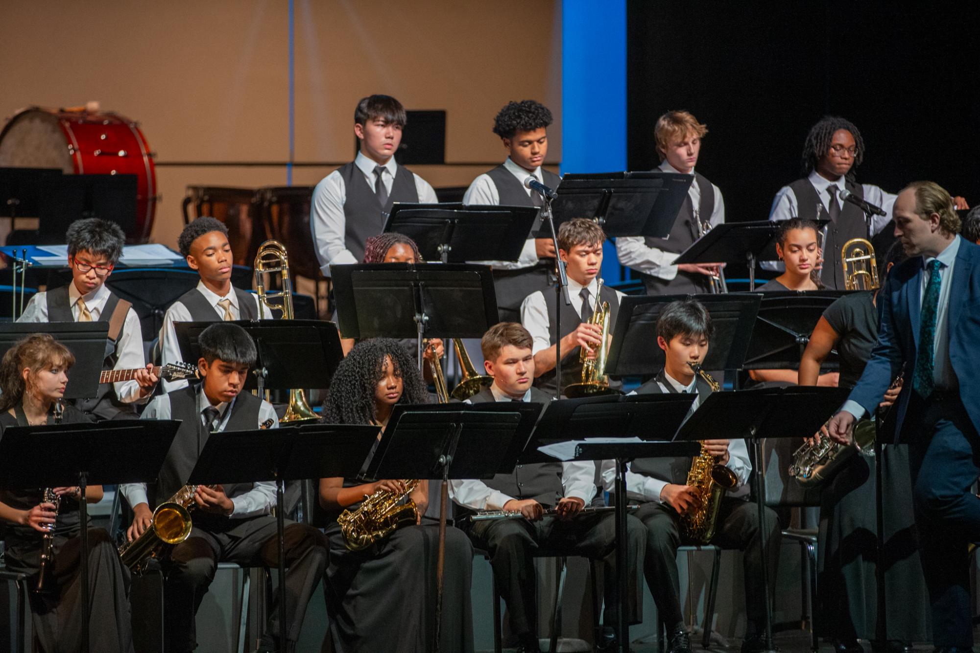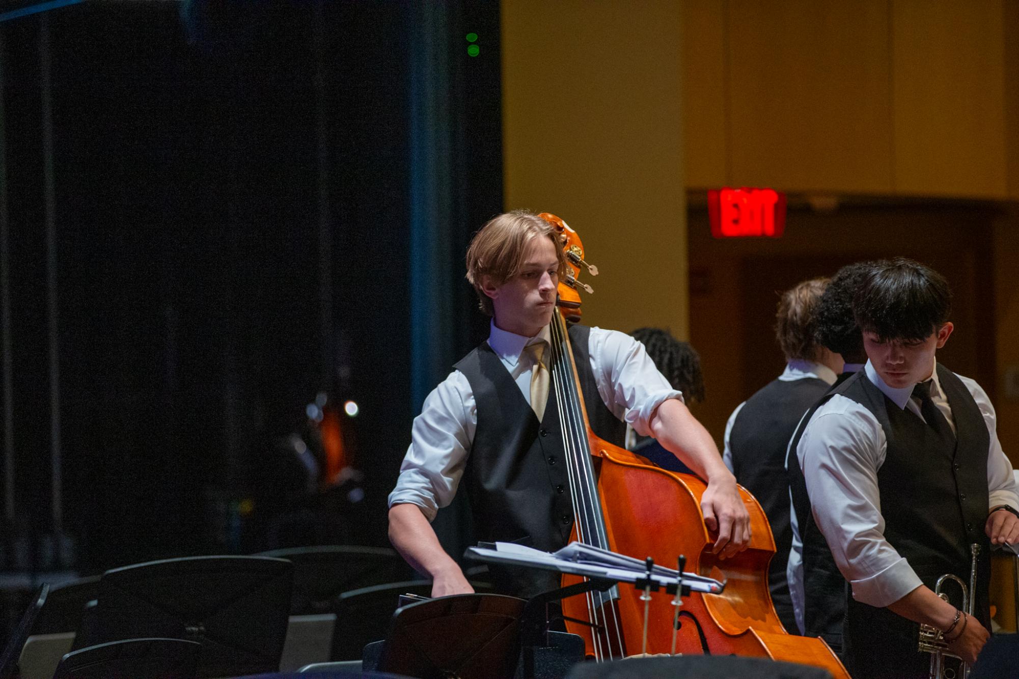 Alex O’Gwin ’27 plays bassoon during the Fall Instrumental Concert. (Danilo Galindo ’27)Willem De Moor ’27 and Zachary Beekey ’26 perform during the Fall Instrumental Concert. (Danilo Galindo ’27)Daniello Mauban ’26 showcases his skill on the trombone. (Danilo Galindo ’27)The Our Lady of Good Counsel band performs for the audience. (Danilo Galindo ’27)August Scales ’26 plays the drum kit for the Good Counsel band. (Danilo Galindo ’27)Faith Tarkang ’26 performs her trombone solo for the audience. (Danilo Galindo ’27)Mr. Pope addresses the audience at the 2025 Fall Instrumental Concert. (Danilo Galindo ’27)Mr. Kramer and the OLGCHS band thank the audience for attending the concert.